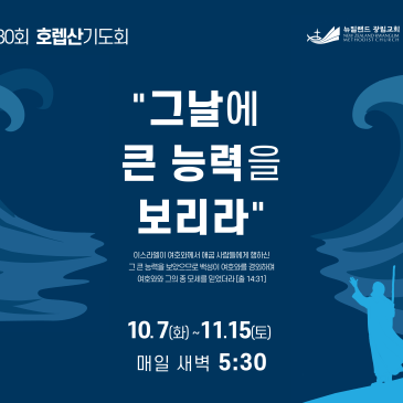 2025 제30회 호렙산 특별새벽기도회 12월 22, 2025 제30회 호렙산 특별새벽기도회가 10월 7일(화) ~ 11월 15일(토) 매일 새벽 5시 30분에 교회에서 진행되었습니다.